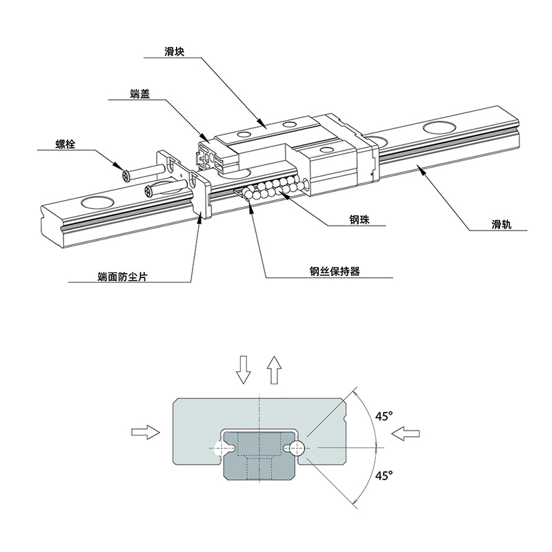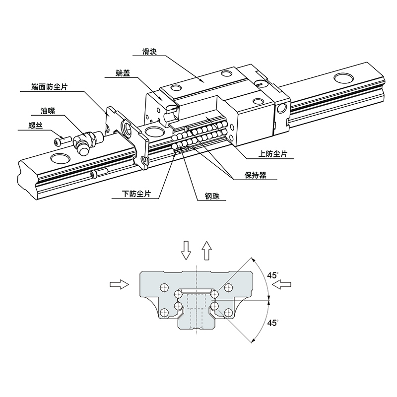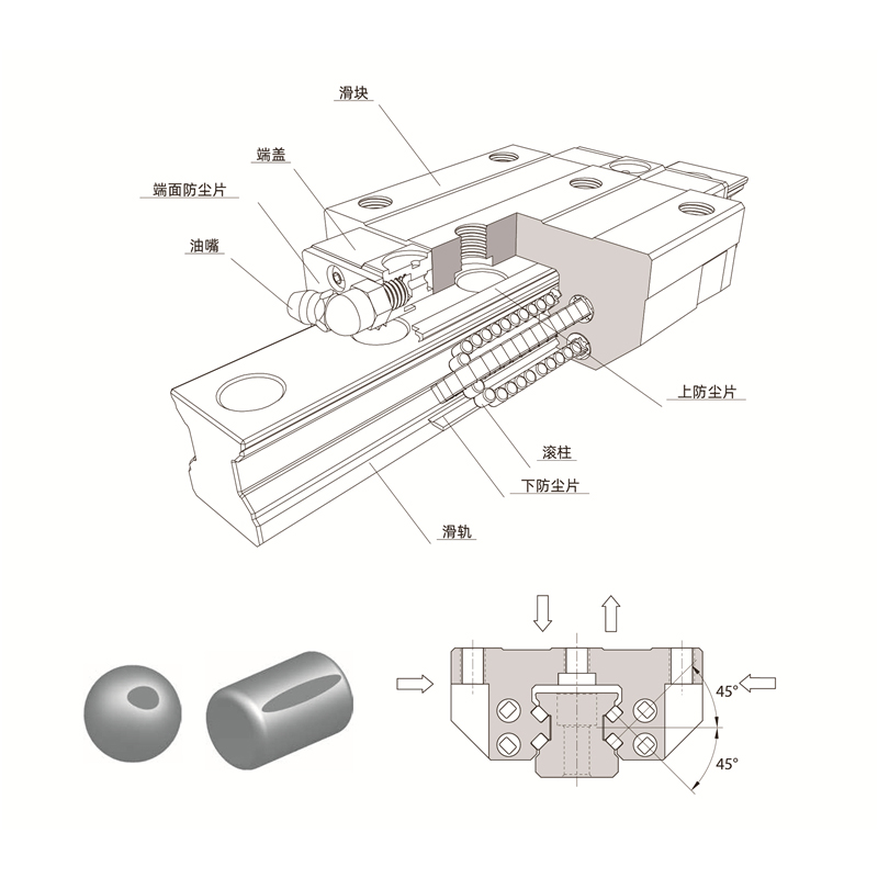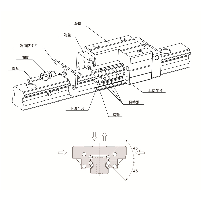 设计:零件一体化,减少结构的累进公差,采用小直径钢珠,大幅度增加顺畅度同时有效减少滚动噪音。自润滑系统,有效拉长润滑时效,增加导轨使用寿命