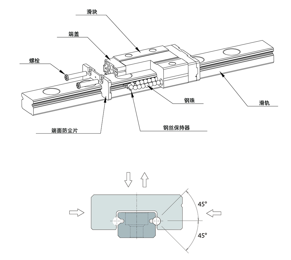行走顺畅度佳,低噪音简单圆滑的钢珠回流路径设计,并采用耐冲击的强化合成树脂之钢珠循环配件,运转顺畅度佳,噪音度低。